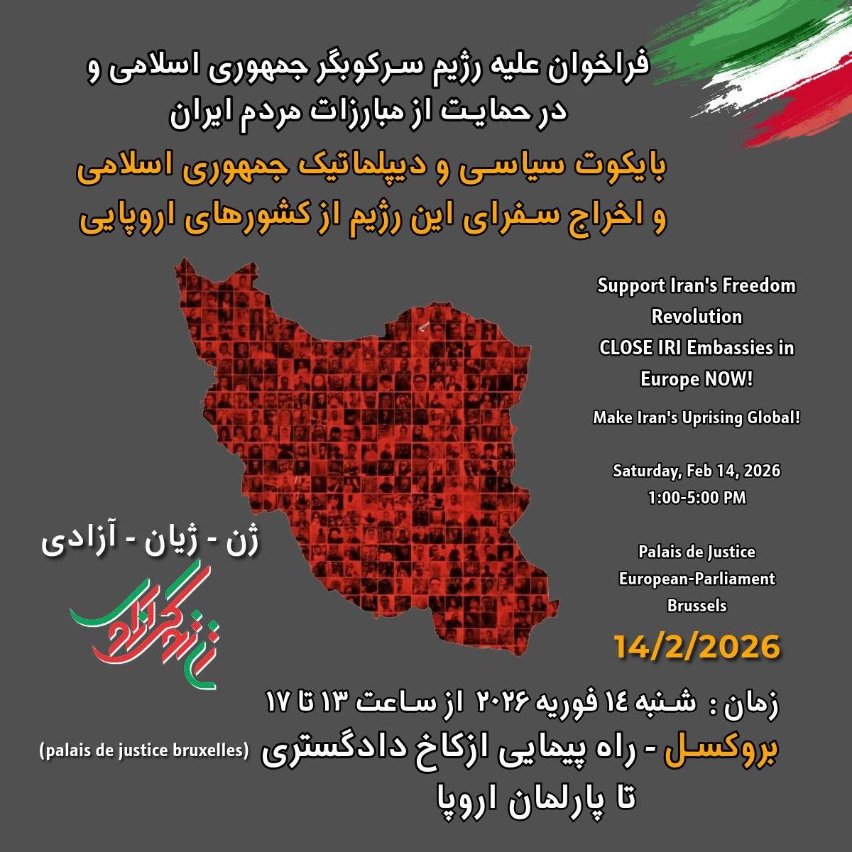 ما از همهی آزادیخواهان، برابریطلبان و نیروهای ضد استبداد دعوت میکنیم در بروکسل گرد هم آیند تا صدای مردم ایران، خانوادههای دادخواه، بازداشتشدگان و زندانیان دربند باشند.