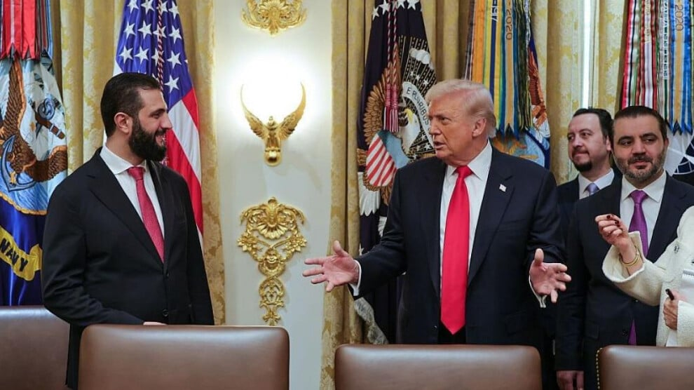 همزمان با فراخوان عبدالله اوجالان در ۲۷ فوریه ۲۰۲۵ برای آتشبس و گشودنِ راهِ آشتی، فرآیندی متناقض در سوریه پیش رفت. پس از رخدادهای دسامبر ۲۰۲۴، محمد الجولانی (حمد الشرع) که پیشتر جایزهی ۱۰ میلیون دلاری برای سرش تعیین شده بود، در رئال سیاسی دیگری «بازبرندسازی» شد. با ظاهری تازه و پوششی دگرگون، او در کاخ سفید عرضه شد؛ فیگوری که بهطور نمادین با «اسپری ترامپ روی کتوشلوار» عسل تعمید داده شد تا به دمشق بازگردد.
